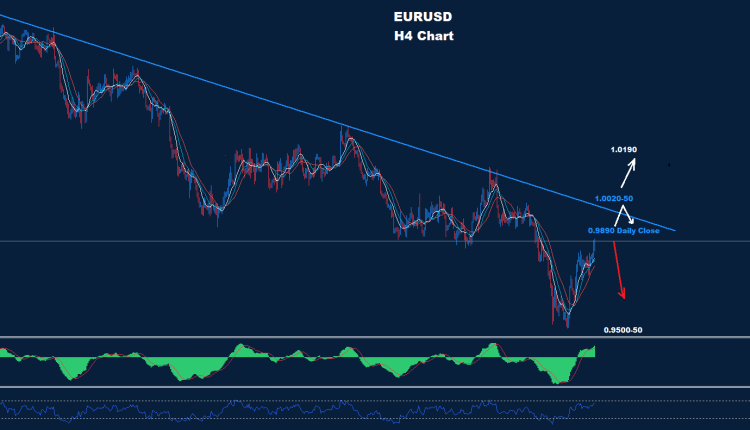 تمكن اليورو من اختبار المقاومة 0.9890 اليوم بينما لا يزال ينتظر الإغلاق اليومي.
