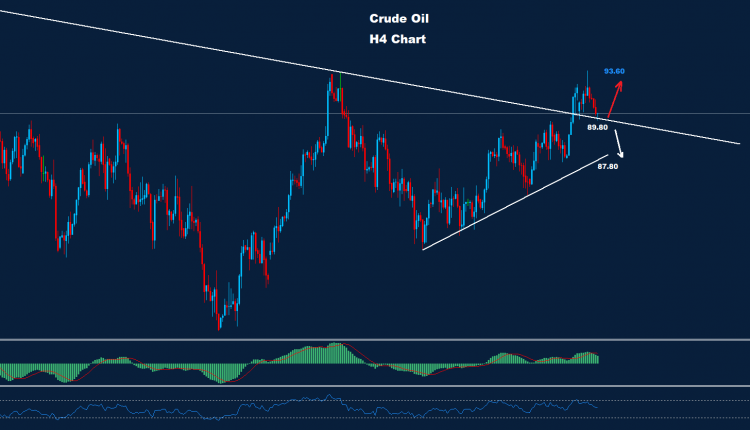 تمكن النفط الخام من استئناف تقدمه حيث تمكن من تحقيق الهدف الثاني 93.60 يوم أمس.