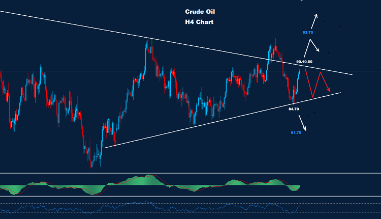 تظهر المستويات خلال اليوم النفط الخام داخل تشكيل مثلث تداولي والذي قد يتحكم في السوق.