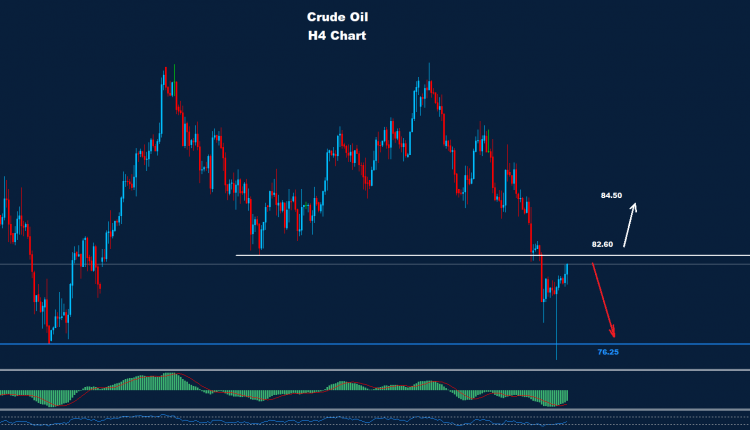 تمكن النفط الخام يوم أمس من الانخفاض دون مستوى الدعم 76.25 قبل توجه السوق لحركة ارتداد سريعة.