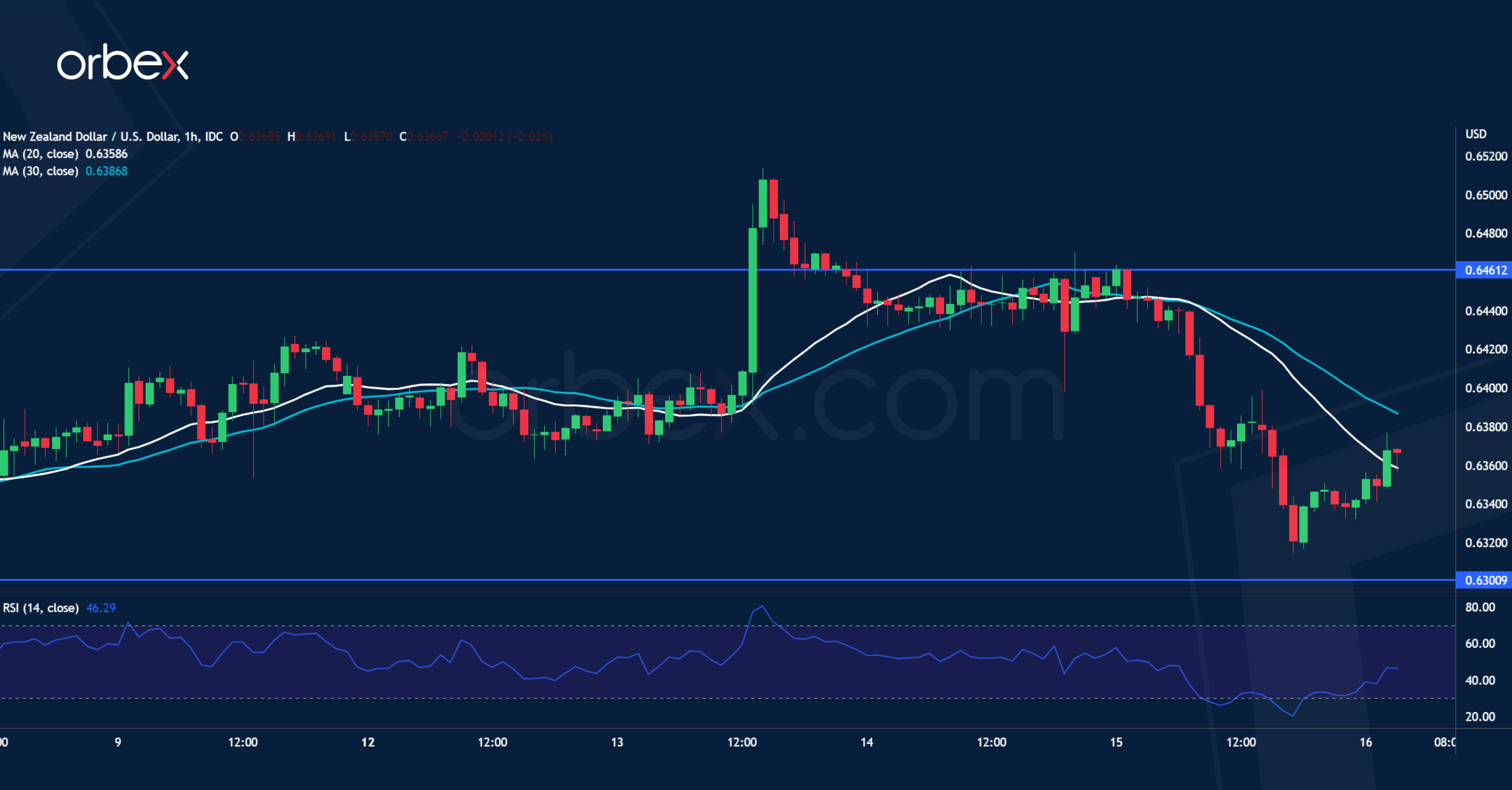انخفض الدولار النيوزيلندي بعد أن شدد بنك الاحتياطي الفيدرالي على إبقاء أسعار الفائدة مرتفعة لفترة أطول. وساعد اختراق الدولار النيوزيلندي أعلى قمة عند ٠.٦٤٦٠ على تحسين المعنويات. والآن سيتعين على المشترين تعزيز سيطرتهم قبل أن يتمكنوا من الارتفاع. ويشير الانخفاض إلى ما دون أصل الشمعة الصاعدة الأخيرة إلى غياب المتابعة، وبالتزامن مع علامات الارتفاع الزائد من مؤشر القوة النسبية الموجود في منطقة ذروة الشراء، قد يدفع المشترين إلى جني الأرباح. ويقع أقرب دعم عند ٠.٦٣٠٠ ومستوى المقاومة الجديد عند ٠.٦٤٦٠.