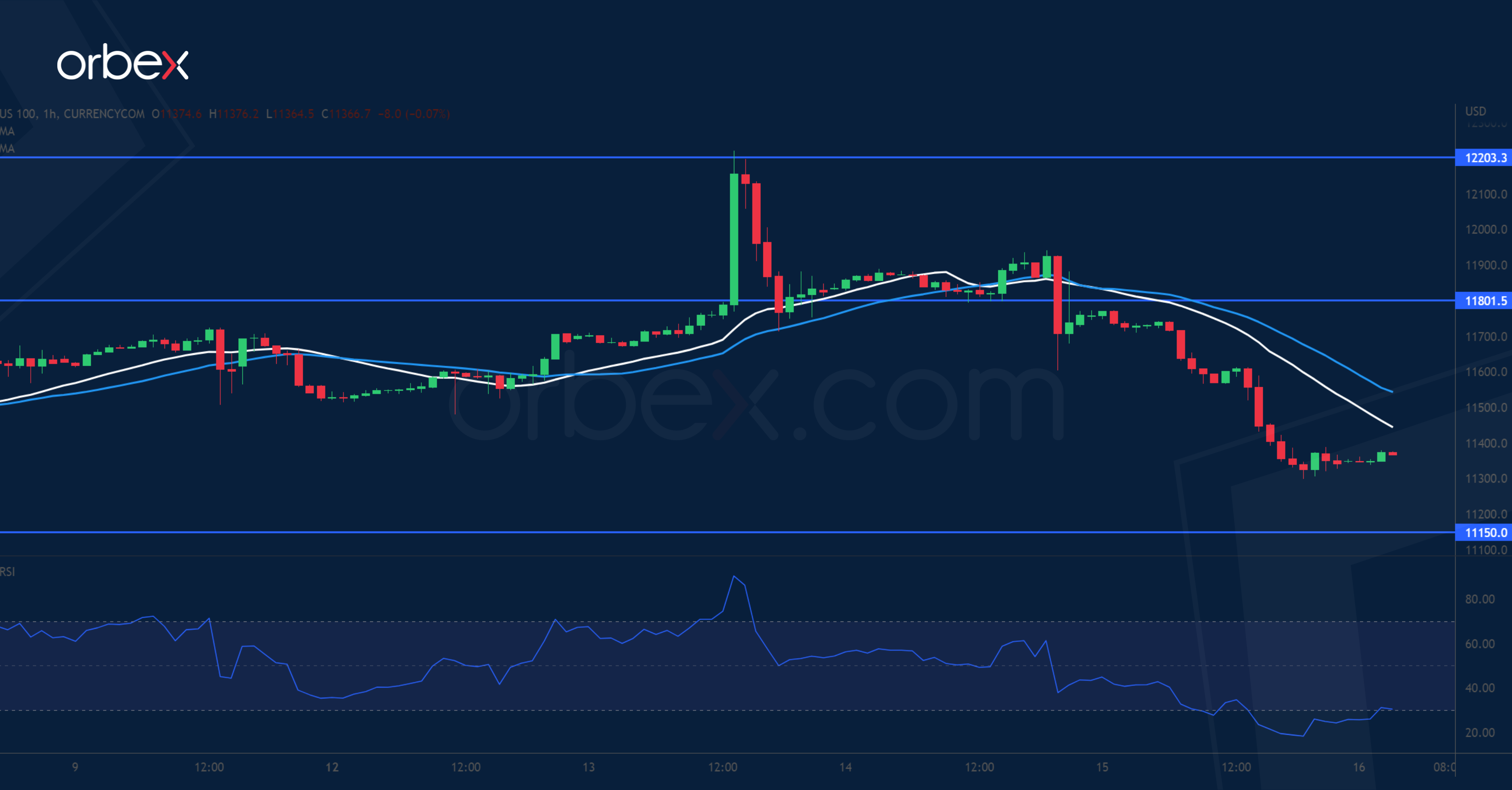 انخفض مؤشر ناسداك ١٠٠ بعدما تسبب تشدد البنوك المركزية العالمية بقلق المستثمرين. وكانت حركة السعر المتقلبة بسبب المحفزات المتعددة هذا الأسبوع ومستويات المقاومة من عمليات البيع المكثفة في سبتمبر الماضي. وعكس الارتفاع الأخير مساره عند المستوى ١٢٢٠٠، وهو دعم قد تحول إلى مقاومة منذ منتصف سبتمبر. وأكد اختراق الحد الأدنى ١١٥٠٠ من التعزيز ضعف الاهتمام بالشراء، وقد يتسبب في اختبار قاعدة الاختراق الصاعد السابق عند ١١١٥٠. ومع دخول مؤشر القوة النسبية في منطقة ذروة البيع، يمثل ١١٨٠٠ عقبة جديدة في حالة الارتداد.