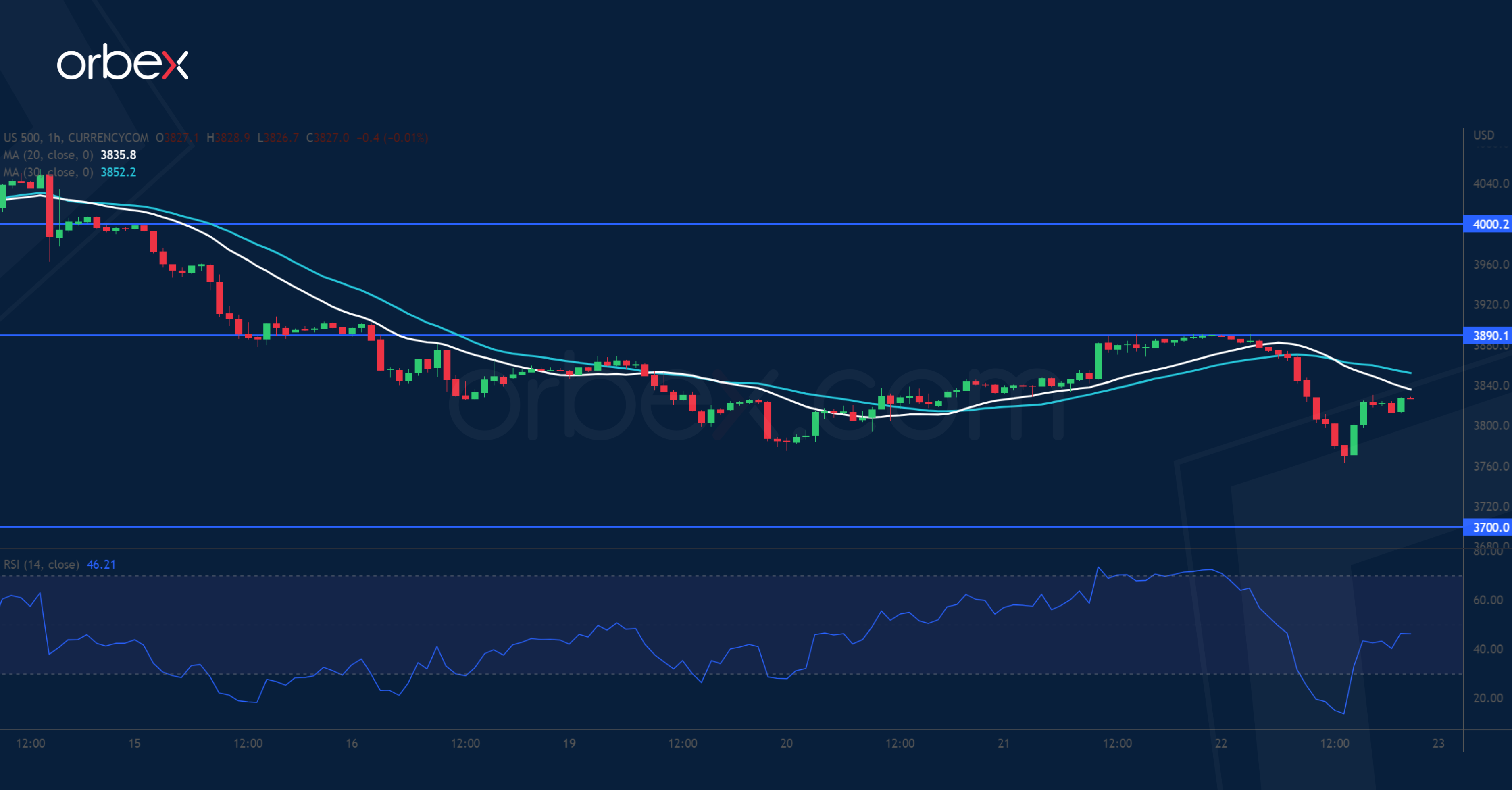 وعلى المدى القصير، توقفت ارتدادات المؤشر عند مستوى 3890، مما سيدفعه إلى مواجهة منطقة طلب رئيسية فوق 3700؛ فيما قد تعكس محددوية عمليات الشراء أن مؤشر القوة النسبية سيعود إلى المنطقة المحايدة.