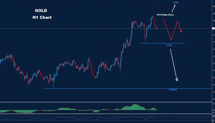 قد ينشط الإغلاق اليومي فوق 1807 مزيداً من التقدم نحو 1835 وما فوق.