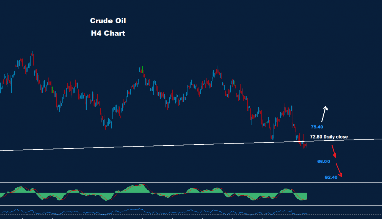 تمكن النفط الخام من الحفاظ على الإغلاق اليومي دون المقاومة 72.80 التي لا تزال تحتفظ بضغط الاتجاه الهبوطي على السوق.