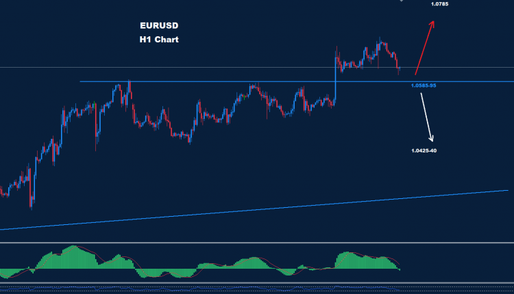 تمكن اليورو من اختبار منطقة الدعم 95-1.0585 يوم أمس والتي لا تزال قائمة حتى الآن