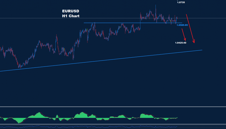 تمكن اليورو من ضرب بضع نقاط تحت مستويات الدعم 95-1.0585 والذي قد يكون أول إشارة لحركة هبوط أبعد
