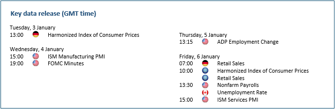 تراجع مؤشر “ستاندرز أند بورز 500” على خلفية شعور المستثمرين بالقلق حيال تبني الفيدرالي للسياسة النقدية التشديدية لفترة طويلة من الزمن. فيما قدمت العطلة للمشاركين في السوق بعض العزاء، ولكن العام الجديد قد يأتي مع بعض التحديات. فنظراً لعزم الاحتياطي الفيدرالي على تهدئة سوق العمل وتخفيف ضغط الأجور، ستكون بيانات أعداد الوظائف بالقطاع غير الزراعي الأمريكي بمثابة الحافز الرئيسي للاتجاه التالي.