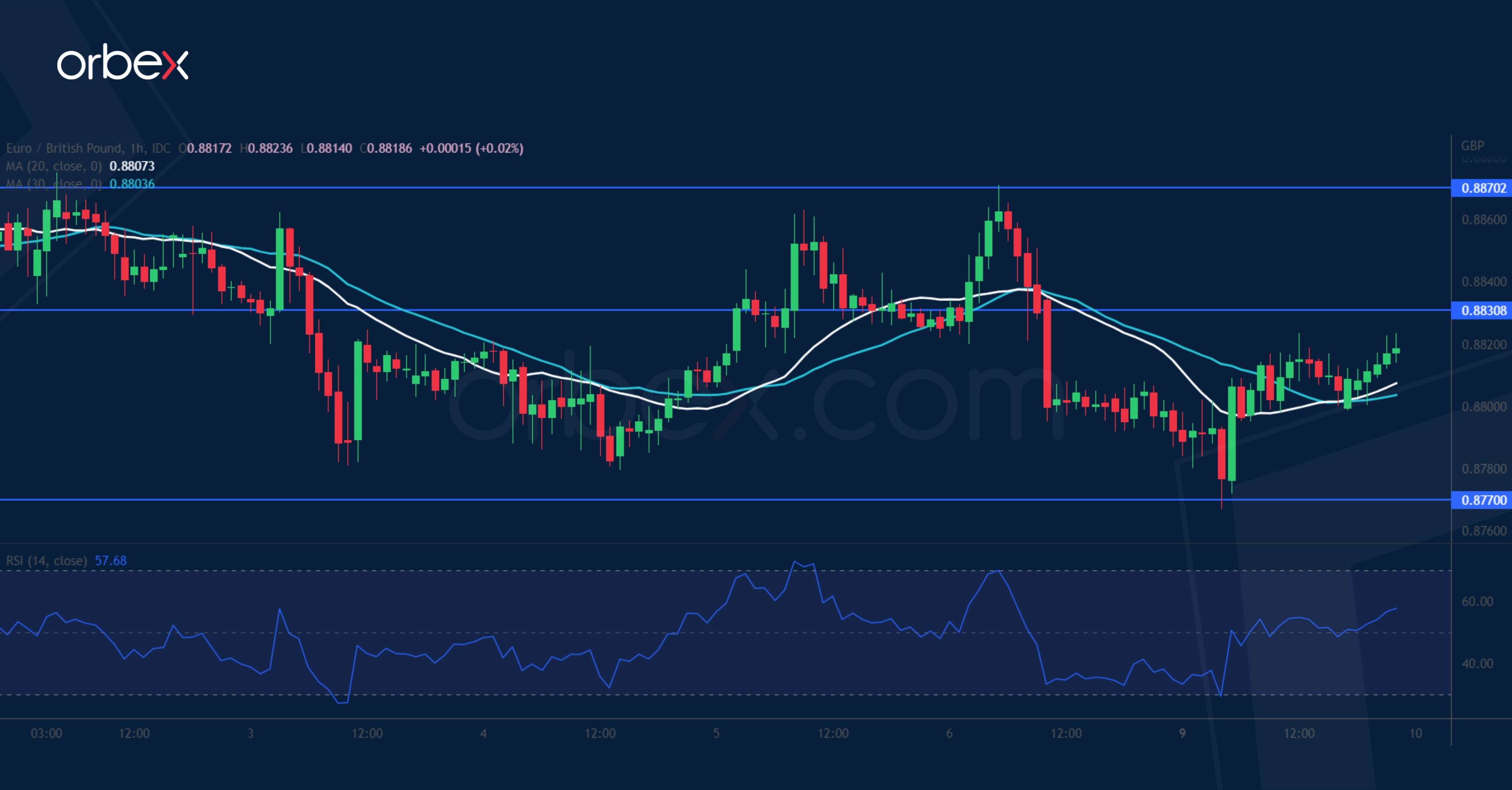 تراجع الجنيه الإسترليني وسط تحذيرات كبير الاقتصاديين في بنك إنجلترا من استمرار التضخم. وعلى الرسم البياني اليومي، تماسك اليورو بعد أن ارتفع لأعلى مستوى سجله في أكتوبر الماضي عند 0.8860. وقد يكون هبوط زوج اليورو/إسترليني دون 0.8780 قد دفع المتداولين خلال اليوم إلى جني الأرباح، مما قد يتسبب في حركة سعرية متقلبة على المدى القريب.