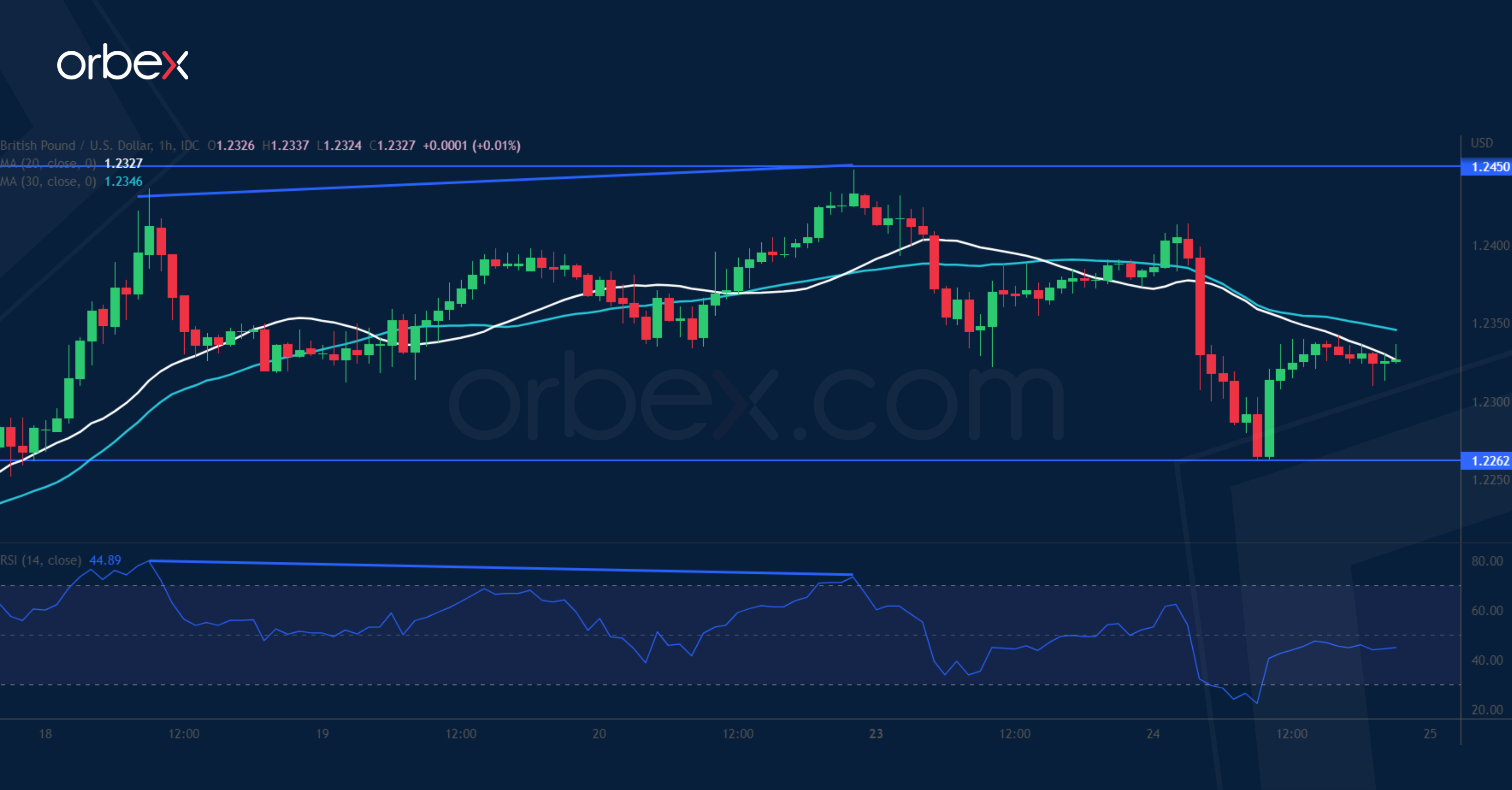 تراجع الجنيه الإسترليني مقابل الدولار الأمريكي بعد أن أظهر مؤشر مديري المشتريات الخدمي في المملكة المتحدة انكماشاً أكبر من المتوقع. لتفشل ثاني محاولات الباوند عند قمة ديسمبر ١.٢٤٥٠ في تخطيها. ويشير التباين السلبي لمؤشر القوة النسبية إلى تباطؤ زخم الصعود، ليشير هبوط الزوج بعد ذلك دون ١.٢٣٢٠ أن الهبوط بات هو المسار السلس أمام الزوج. وحِدة عمليات البيع وحدها هي التي ستفصل ما إذا كان ما يواجهُ الزوج هو حركة تصحيح، ام انعكاس في الاتجاه. وفيما يمثل المستوى ١.٢٢٦٠ خط الدفاع الأول للمشترين، يعد المستوى ١.٢١٦٠ والواقع أعلى المتوسط المتحرك لمدة ٢٠ يوماً خط الدفاع الثاني.
