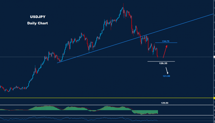 تمكن الدولار الأميركي مقابل الين الياباني من الوصول إلى ما دون 129.50 حيث نصحنا قبل ذلك بأن هذا الاختراق قد يدفع باتجاه مزيد من الانخفاض نحو مستويات 128.00 وما دونها.