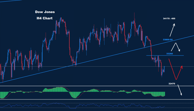 تمكن مؤشر الداو من الحفاظ على التراجع و الهبوط حيث تمكن من الوصول إلى مستويات 32630 الأسبوع الماضي