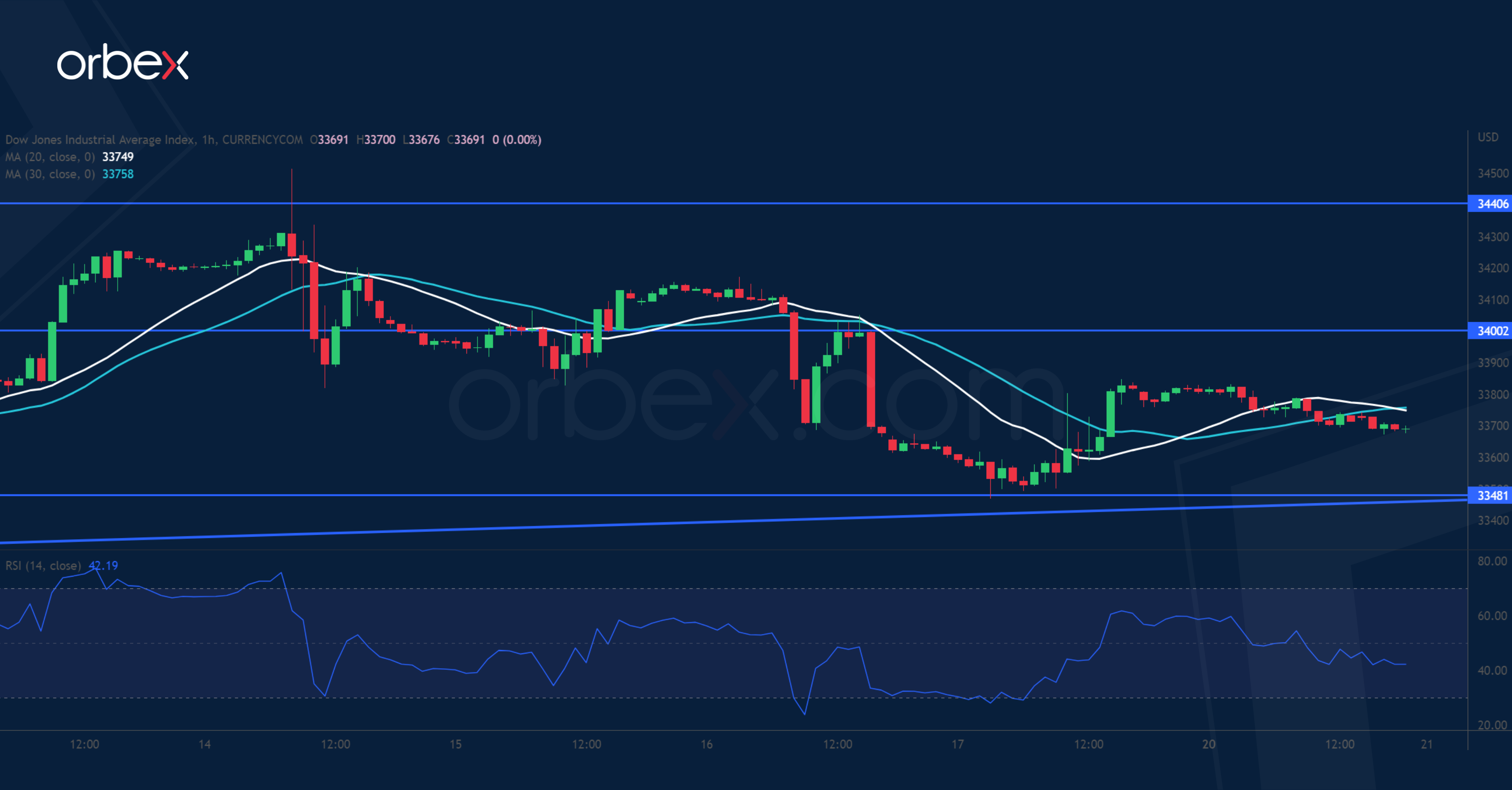 يستقر مؤشر “داو جونز ٣٠” فيما يترقب المتداولون محضر اجتماع بنك الاحتياطي الفيدرالي. ويشير ذيل الشمعة العلوي الطويل في منطقة العرض بالقرب من ٣٤٤٠٠ إلى الرفض بعد أن كافح المؤشر للارتفاع. وأفضى الانخفاض إلى ما دون قاع التأرجح عند ٣٣٥٢٠ المشترين في موقع دفاعي. وقد دأب خط الاتجاه الصاعد على دعم لارتفاع المتقلب في الشهرين الماضيين وهو مستوى مهم صموده للحفاظ على المسار في الاتجاه الصاعد. وقد يؤدي اختراقه عند ٣٣٤٨٠ إلى تصفية أوسع تهبط بالمؤشر نحو الدعم اليومي عند ٣٣٠٠. وقبل أن يتمكن السعر من العودة للارتفاع، يتعين تجاوز أولى العقبات الواقعة عند المستوى ٣٤٠٠.