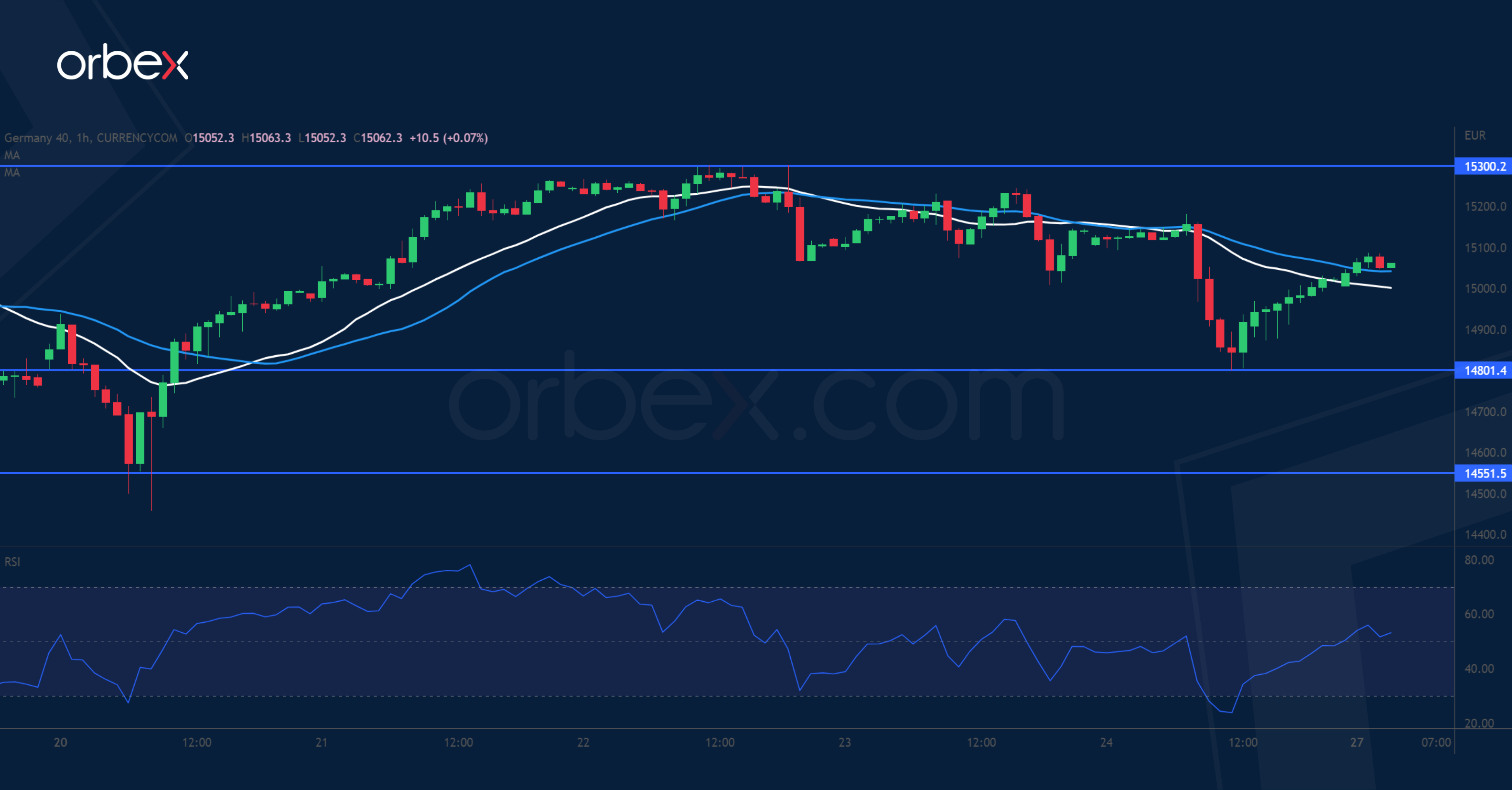 قلص مؤشر “داكس ٤٠” من خسائره مع محاول محافظي البنوك المركزية تهدئة المخاوف بشأن أزمة السيولة. وقد واجه المشترين صعوبة في تجاوز منطقة الازدحام التي تشكلت من قبل الدعم الذي تحول إلى مقاومة عند ١٥٣٠٠ والمتوسط المتحرك البسيط لمدة ٢٠ يوماً. ونجح كسر المستوى النفسي ١٥٠٠٠ في إخراج بعض المشترين المترددين. ومن الضروري صمود منطقة الطلب قرب ١٤٨٠٠ والتي تعود للاختراق الصاعد الذي شهده المؤشر في شهر يناير للحفاظ على الارتداد قائماً. ومع تقلص نطاق التداول بين هذه المستويات المهمة، فمن شأن اختراق أحدهما أن يملي الحركة التالية للمؤشر.