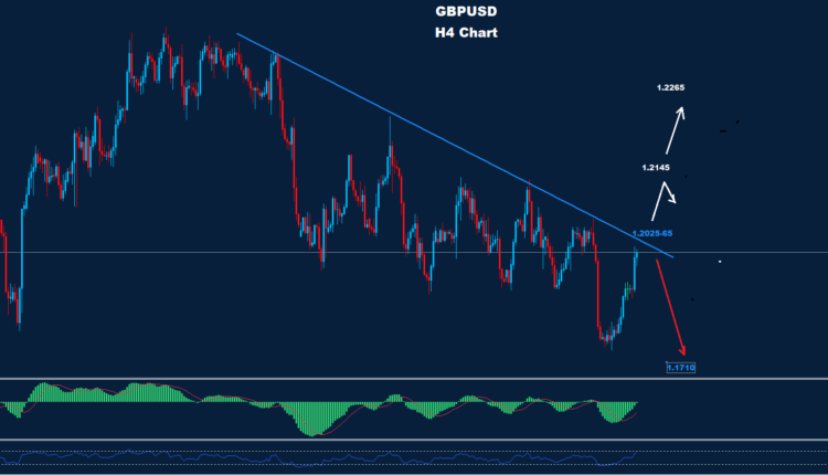 فوق 1.2065 نتوقع المزيد من التقدم حيث توجد مقاومة أخرى عند 1.2145 مما قد يدفع باتجاه تصحيح هبوطي.