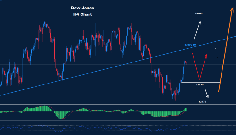 فوق 33850 من المتوقع المزيد من التقدم مع وجود مقاومة حول 34400.