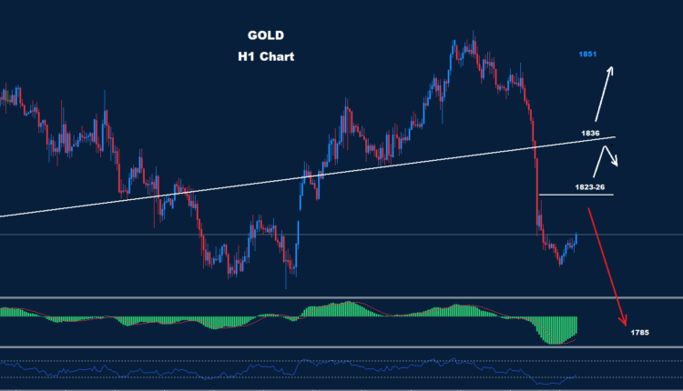 فوق 1826 فإن المزيد من التقدم قد يضرب السوق مع وجود مقاومة أخرى حول 38-1836 والتي بدورها قد تنشط حركة الهبوط.