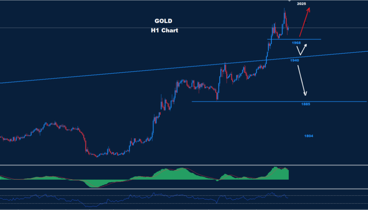 كما نرى على الرسم البياني للمدى اليومي، يواجه الذهب دعماً خلال اليوم حول 1968 و1940، حيث من المتوقع أن يستمر التقدم نحو 2025 وما فوق طالما استمر السوق في الحفاظ على تداولاته فوق أحد تلك الدعامات.