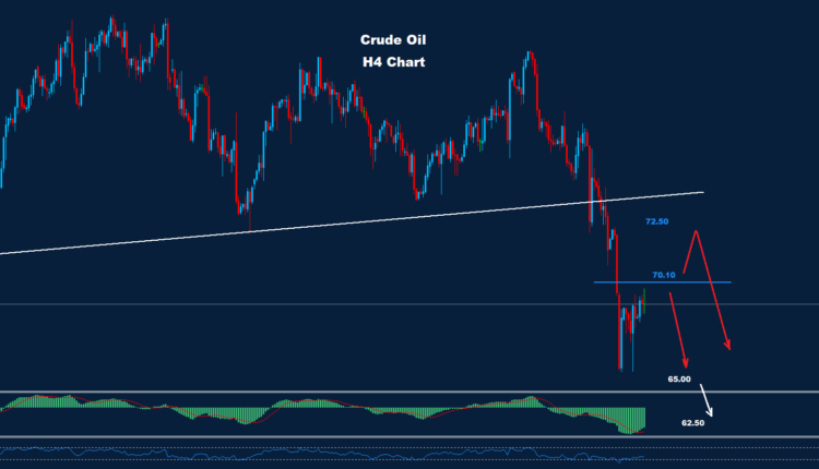 فوق 70.10، قد يضرب المزيد من التقدم بالسوق حيث توجد مقاومة أخرى حول 72.50 والتي بدورها قد تنشط موجة الهبوط هذه مرة أخرى.