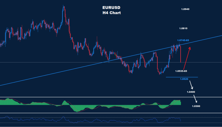 كما نرى على الرسم البياني ، تواجه السوق منطقة دعم حول 65-1.0535 والتي قد تنشط حركة تصحيح ارتداد مرة أخرى نحو 1.0700 وما فوق.