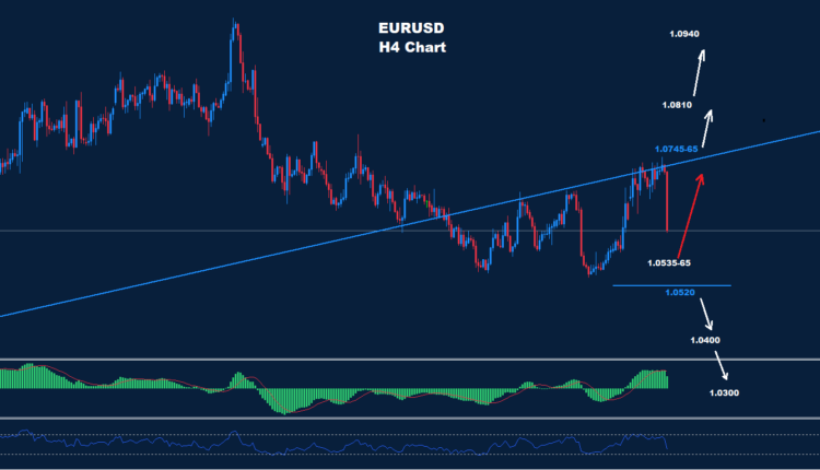 وطالما استمر اليورو في ثبات تداولاته دون مقاومة 1.0745، فقد نتوقع موجة هبوط أخرى.