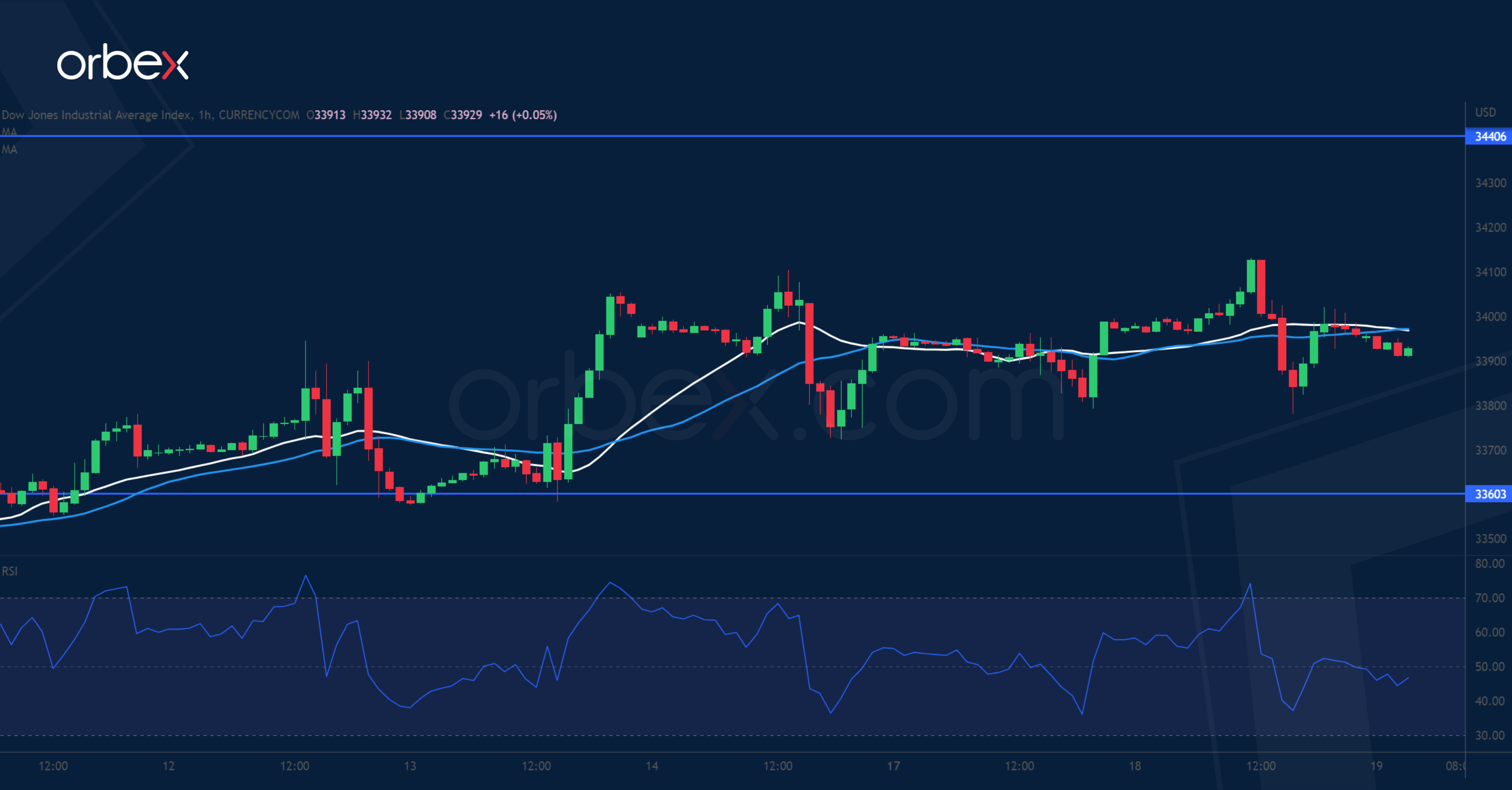 يستقر مؤشر “داو جونز ٣٠” مع بدء موسم إعلان أرباح الربع الأول. ويدل التقاطع الصاعد للمتوسط المتحرك على الرسم البياني اليومي في أعقاب تجاوز المؤشر قمة مارس ٣٣٦٠٠ على تحسن المعنويات، وذلك بعد أن بدأ المؤشر هذا العام في مركز دفاع. وسيتمكن المشترين من إخراج بقية البائعين من المشهد إذا تمكنوا من رفع العروض عند أعلى مستوى لهذا العام ٣٤٤٠٠، ليصبح من بعد ذلك الطريق ممهدًا أمامهم للوصول عند المستوى القياسي ٣٧٠٠٠، والمسجل في ٢٠٢٢. أما في حال حدث تراجع، فإن مستوى الدعم سيكون عند ٣٣٦٠٠.