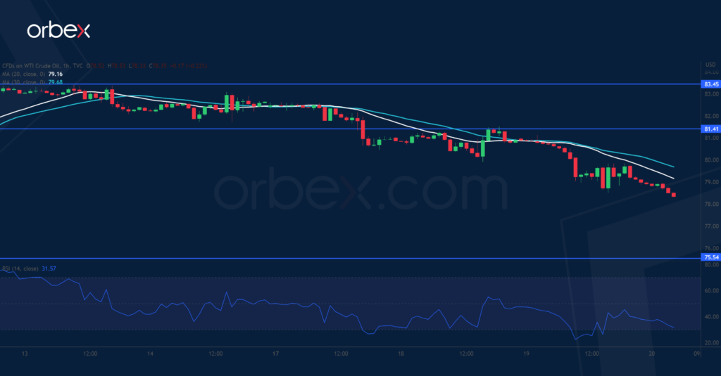 كما نرى على الرسم البياني، فإن المقاومة على المدى القصير تتواجد حول منطقة 82.60 – 83.50 حيث طالما استمر السوق في الاحتفاظ بالتداولات أسفل هذه المنطقة ، فقد يضرب تصحيح هبوطي السوق باتجاه منطقة 80-75.60.