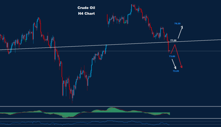 وتحت 73.80 من المتوقع حدوث مزيد من الانخفاض مع دعم حول 72.20