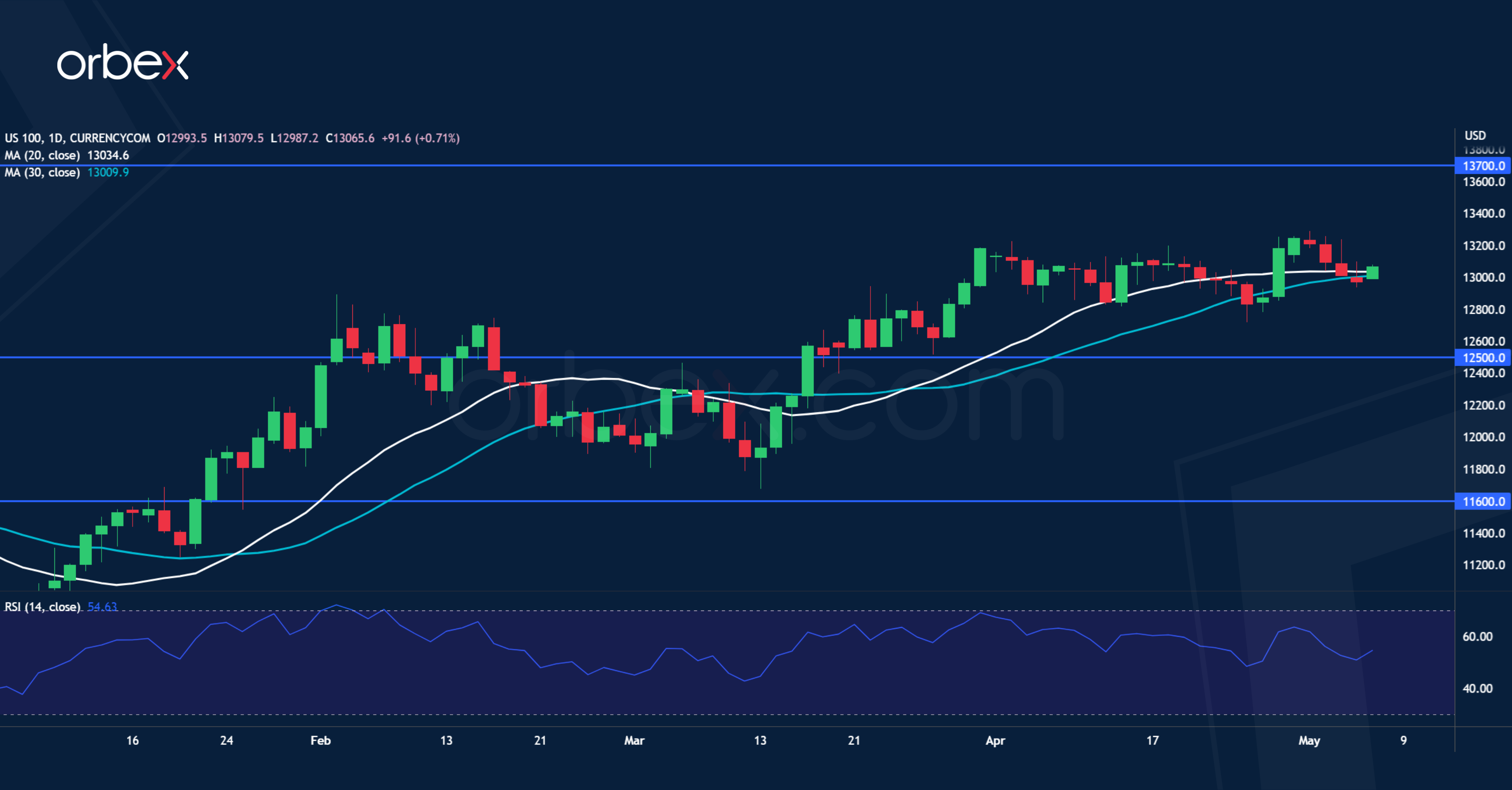 يتباطأ مؤشر “ناسداك ١٠٠” مع إعادة تقييم آفاق النمو في السوق. واستقبلت تلميحات مجلس الاحتياطي الاتحادي بتعليق رفع أسعار الفائدة بحماس قليل، حيث قد لا يبدو نهاية النفق مشرق كما كان الأمر متوقعاً قبل بضعة أشهر. ويتزايد قلق المستثمرون إزاء التأثير الكامل لتشديد السياسات الأكثر عدوانية منذ ثمانينيات القرن العشرين على النمو في الأشهر القليلة المقبلة. حيث أصبحت التصدعات واضحة للعيان مع استمرار تفاقم التوترات في قطاع البنوك. ويمكن أن تصبح نبوءة تتحقق مع تداعيات أوسع نطاقاً على الولايات المتحدة والاقتصاد العالمي. وتعتبر قمة أغسطس الماضي عند ١٣٧٠٠ العقبة التالية، فيما يقع الدعم الرئيسي عند ١٢٥٠٠.