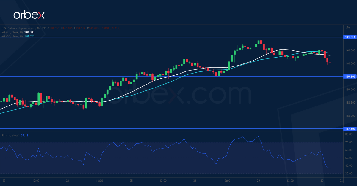 ارتد الين الياباني بعد أن جاءت نتيجة معدل البطالة في أبريل دون المتوقع. ويشير تعمق مؤشر القوة النسبية في منطقة ذروة الشراء على كل من الرسم البياني لليوم والساعة المبالغة في ارتفاع الزوج، وهو ما قد يحد من الاتجاه الصاعد لفترة وجيزة نتيجة حدوث تصحيح في الحركة. وتقع المقاومة المباشرة عند ١٤١.٠٠، وستزداد المقاومة قوة حيث بدأت عمليات البيع المكثفة في نوفمبر الماضي عند المستوى ١٤٢.٢٠. ولكن في حال بدأ المشترين في جني الأرباح، فستكون أولى مستويات الدعم عند ١٣٩.٥٠. أما المستوى ١٣٧.٥٠ حيث يلتقي المتوسط المتحرك البسيط لمدة ٢٠ يوماً والمقاومة التي تحولت إلى دعم فيمثل مستوى دعم هام يتعين صموده للحيلولة دون هبوط الزوج أكثر.