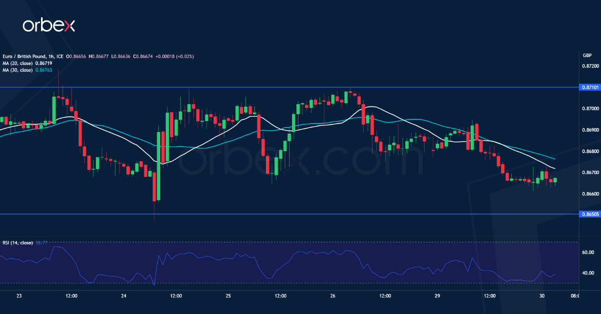 انخفض اليورو مع تراجع عوائد السندات في منطقة اليورو قبل صدور بيانات التضخم. وبقي الزوج تحت وطأة الضغط السلبي بعد سلسلة من الارتداد الضعيفة في منطقة العرض المحصورة بين ٠.٨٧١٠ و٠.٨٧٣٠. ويشير هذا إلى أن البائعين كانوا حريصين على البيع بقوة بعد أن هبطت العملة الموحدة دون مستوى الدعم اليومي عند ٠.٨٧٣٠. ووحده الارتداد السريع أعلى المنطقة المذكورة من شأنه أن يتغلب على زخم الهبوط. وإلا فإن الانخفاض إلى ما دون ٠.٨٦٥٠ سيفضي إلى جولة جديدة من عمليات البيع ويهبط بالزوج نحو أدنى مستويات ديسمبر الماضي بالقرب من ٠.٨٥٧٠.