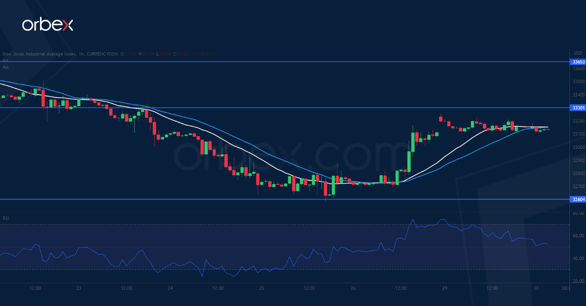 يرتفع مؤشر داو جونز بفعل الأنباء التي تفيد بتوصل إدارة “بايدن“ إلى اتفاق بشأن رفع سقف الدين. ولا يزال المؤشر يسعى للحفاظ على انتعاشه الذي بدأ منذ شهرين بعد أن تخلى عن أكثر من نصف المكاسب. ويمثل ٣٢٦٠٠ أحدث مستوى دعم، كما قد حد الارتفاع أعلى المستوى النفسي والدعم الذي تحول إلى مقاومة عند ٣٣٠٠٠ من الضغط السلبي. هذا ويمثل المستوى ٣٣٣٠٠ الواقع على طول المتوسط المتحرك البسيط لمدة ٢٠ يوماً عقبة رئيسية أمام الارتفاع، وقد يمهد اختراقه الطريق لانتعاش مستدام أعلى ٣٣٨٠٠. وإذا لم يحدث ذلك، فقد ينخفض المؤشر إلى ٣٢٠٠٠٠.