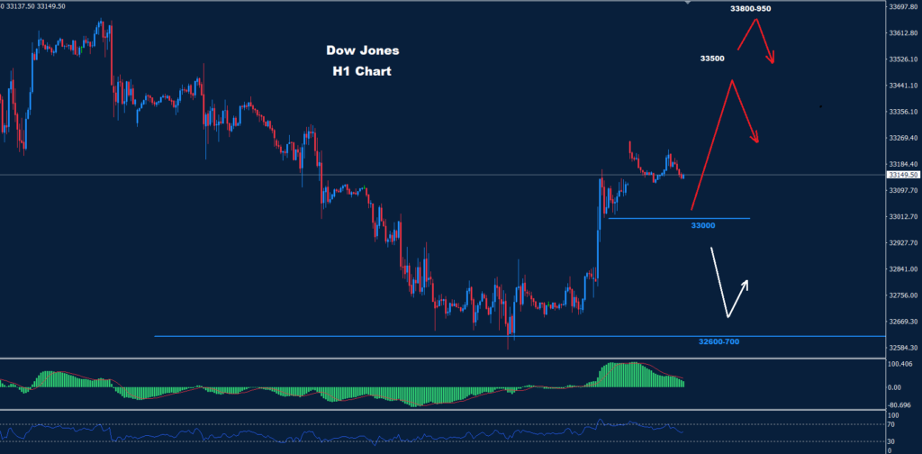 تمكن مؤشر الداو من الاحتفاظ بالتداولات فوق مستوى الدعم 32600 حيث تمكن من الارتداد نحو 100-33000 كما أشرنا الأسبوع الماضي.