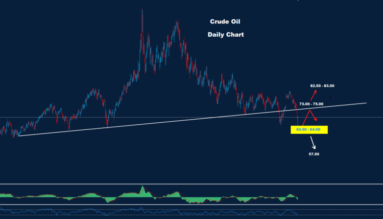 تمكن النفط الخام من الارتداد من منطقة الدعم، حيث تمكن من اختبار منطقة الهدف والمقاومة 73.00-75.00.