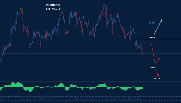كما نرى على الرسم البياني، يواجه السوق أول مقاومة خلال اليوم حول 1.0950 حيث طالما استمر السوق في الحفاظ على التداولات أسفل هذه المقاومة، فمن المتوقع حدوث حركة هبوط أبعد حيث الدعم حول 1.0830 و 1.0710.