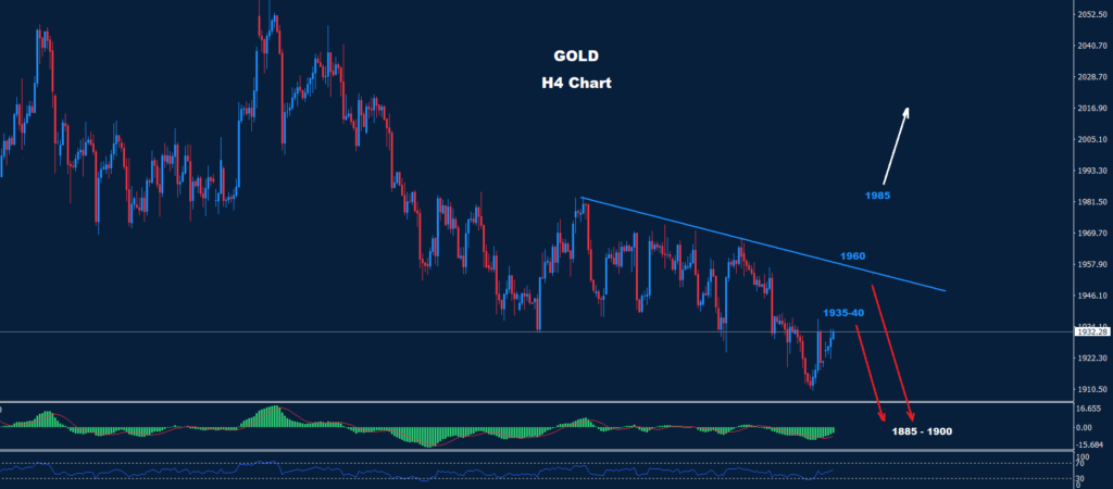 تمكن الذهب من الحفاظ على التداولات تحت المقاومة لمستويات 1985 حيث تمكن السوق من إضافة المزيد من حركة الهبوط نحو مناطق 1910.