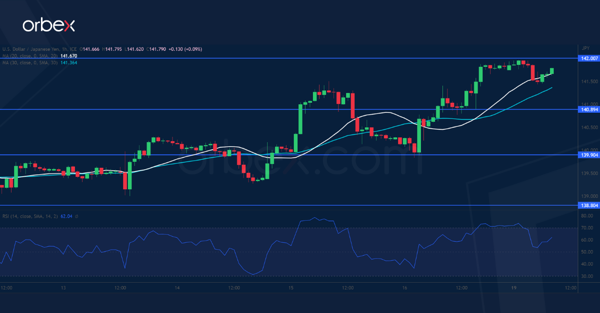 هبط الين الياباني بعد أن أبقى بنك اليابان على سياسته دون تغيير وخفض توقعاته للتضخم لهذا العام. وشهد الارتفاع أعلى قمة مايو عند ١٤٠.٩٠ اختراق الدولار لنطاق التعزيز الأخير والذي سيشير إلى استمرار الصعود نحو ١٤٥.٠٠. ويعد أعلى مستوى لشهر نوفمبر الماضي عند ١٤٢.٠٠ هو أقرب عقبة حيث أن القمة المزدوجة لمؤشر القوة النسبية في منطقة ذروة الشراء قد تخفف من حدة الصعود وقد يشهد الزوج تراجع محدود. ويمثل السعر ١٤٠.٩٠ دعماً جديداً، ويعتبر المستوى ١٣٩.٩٠ أعلى المتوسط المتحرك البسيط لمدة ٢٠ يوماً مستوى رئيسياً يتعين صموده من أجل الحفاظ على التحيز الإيجابي.