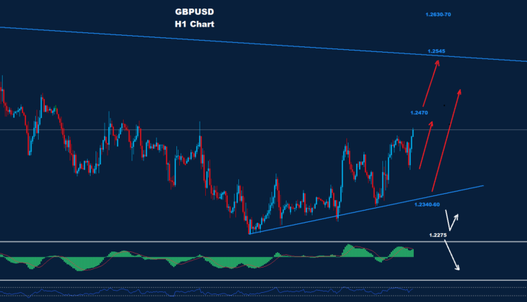 يقع الدعم الأول خلال اليوم عند 1.2400 بينما تتواجد المقاومة الأولى حول 1.2470.