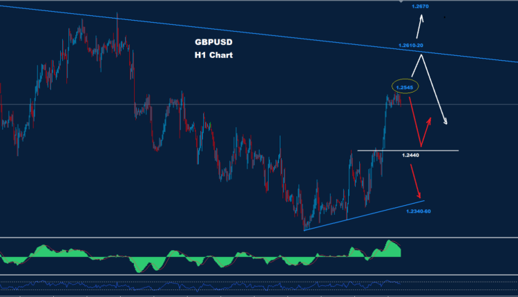 تمكن الجنيه الإسترليني مقابل الدولار الأميركي من الحفاظ على التقدم نحو الهدف 1.2545 كما نصحنا أمس.