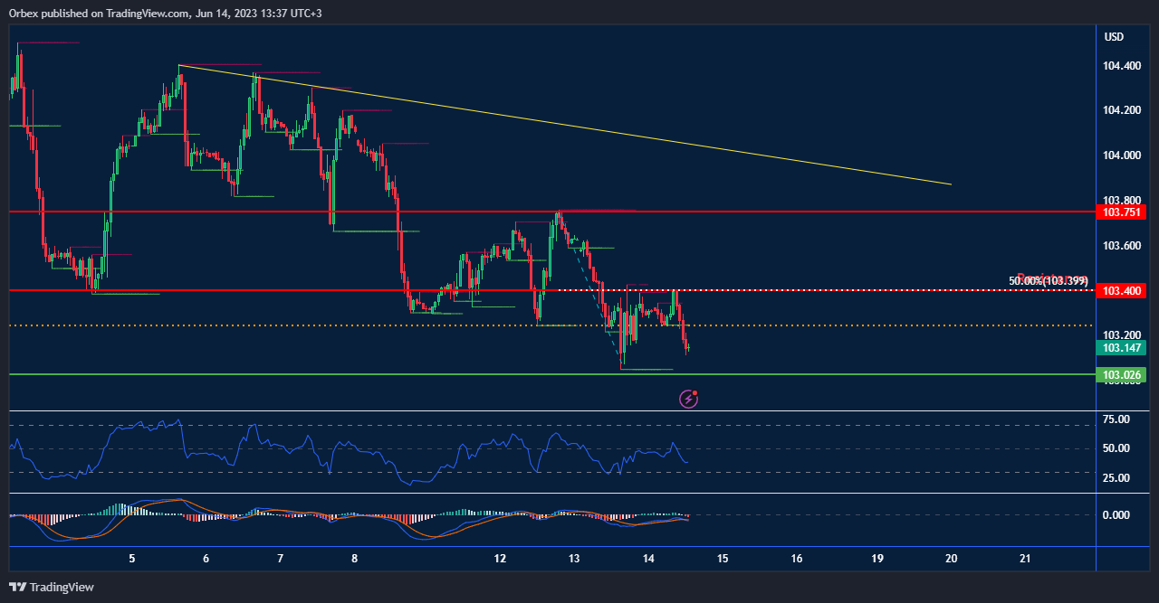 من الناحية الفنية، يلاحظ أن الدولار قد واجه مقاومة عند 103.40 والذي يمثل مستوى تصحيح فيبوناتشي نسبته 50% مما دفعه للهبوط مرة أخرى صوب مستوى الدعم 103.00، ومن المتوقع أن تزداد الضغوط البيعية عليه في حال استقراره اسفل هذا المستوى بعد قرارات الفيدرالي الأمريكي، وهو السيناريو الأرجح.