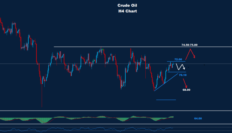 النفط الخام يواجه فرصة لمنطقة تداول صغيرة خلال اليوم بين الدعم 70.10 والمقاومة 72.00.