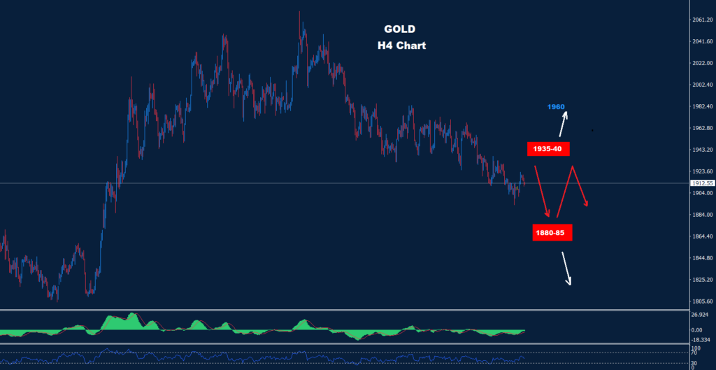 كما نرى في الرسم البياني، تمكن السوق من إنشاء منطقة تداول جديدة بين الدعم 85-1880 والمقاومة 40-1935.