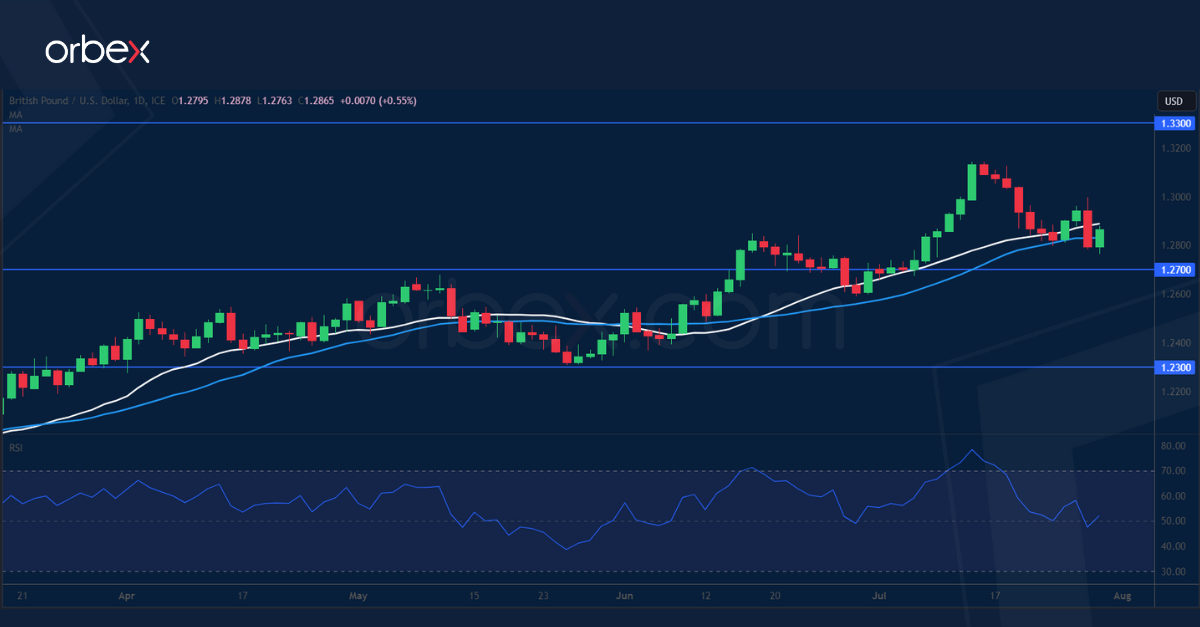 صعد الجنيه الإسترليني على خلفية توقعات إبقاء بنك إنجلترا على توجيهاته المستقبلية متشددة. وبدورها، سعّرت الأسواق المالية الزيادة المرتقبة في معدل الفائدة هذا الأسبوع من قِبل بنك إنجلترا عند ربع نقطة أساس. ويعتبر تباين توقعات المعدل النهائي لأسعار الفائدة البريطانية – والذي انخفض دون 6%- المحرك الرئيسي لحركة السعر الحالية.