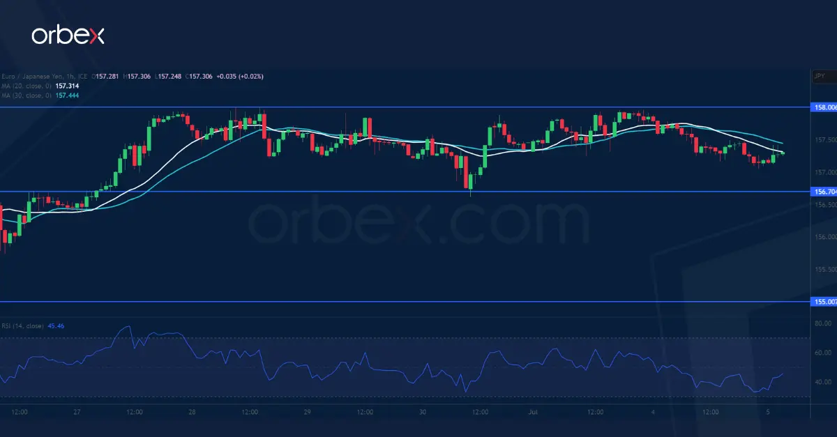 تماسك الين الياباني أمام اليورو في ظل التحذير الذي أطلقه وزير المالية الياباني من بيع الين والذي يثير بدوره تكهنات التدخل. ومع تذبذب السعر دون المستوى ١٥٨.٠٠، فإن حالة ذروة الشراء لمؤشر القوة النسبية اليومي قد يتسبب في تراجع الزوج إذا كان المشترون مترددين في ملاحقة العروض المرتفعة. ولا تزال المعنويات إيجابية للغاية وقد يتطلع المشترين إلى الحفاظ على الاتجاه الصاعد قائماً. ويعتبر ١٥٦.٧٠ أول مستوى يتوقع متابعة طلبات الشراء عنده. وفي حال شهد الزوج مزيداً من التراجع، فيتعين مراقبة المستوى النفسي ١٥٥.٠٠ كونه يمثل دعماً رئيسياً لتواجده عند التقاء القاع السابق والمتوسط المتحرك البسيط لمدة ٣٠ يوماً.