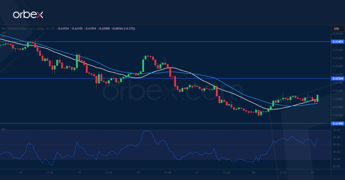 يتمسك الدولار الأمريكي بالمكاسب الأخيرة التي حققها أمام نظيره النيوزيلندي بعد بيانات مؤشر مديري المشتريات التي أظهرت أن الولايات المتحدة هي أكثر الاقتصادات مرونة ومقاومة. ويشير التراجع طويل الأمد على جني الأرباح المحققة من الارتفاع السابق، وحالياً يختبر الزوج منطقة الطلب القريبة من ٠.٦١٤٠ حيث قاعدة الارتفاع الذي شهده الزوج في يوليو. ويعد صمود هذه المنطقة مهماً للحفاظ على تحيز الارتداد، وإلا سيعرض كسره الزوج للهبوط نحو قاع التأرجح اليومي عند ٠.٦٠٥٠. ورغم أن حالة ذروة البيع لمؤشر القوة النسبية قد تفضي إلى سلوك شراء الانخفاضات، إلا انه سيتعين على المشترين تجاوز المستوى ٠.٦٢٥٠ أولاً، للبدء في تخفيف الضغط السلبي.
