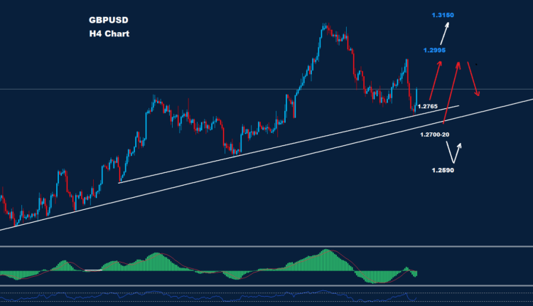 تحت 1.2700 فإن المزيد من الانخفاض قد يضرب السوق مع وجود دعم حول 1.2590 مما قد يعطي فرصة لحركة ارتداد أخرى.