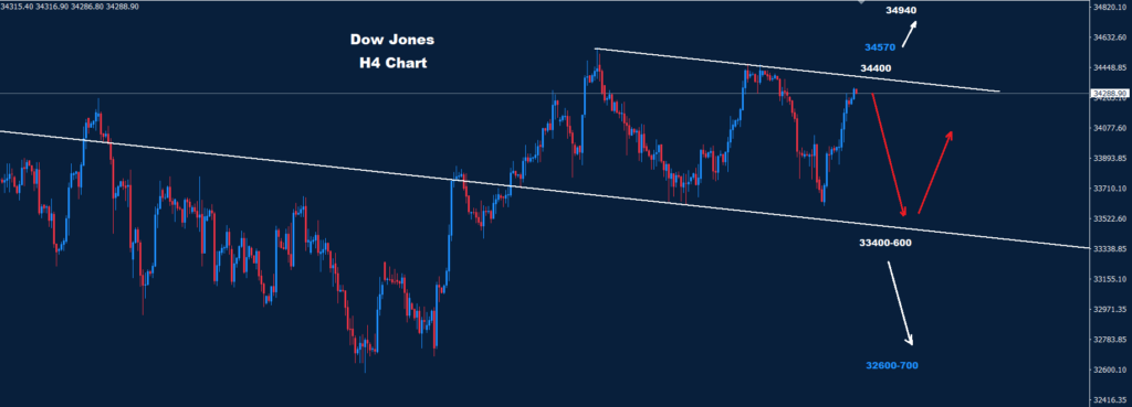فوق 34570 فإن المزيد من التقدم نحو 34940 قد يضرب السوق.