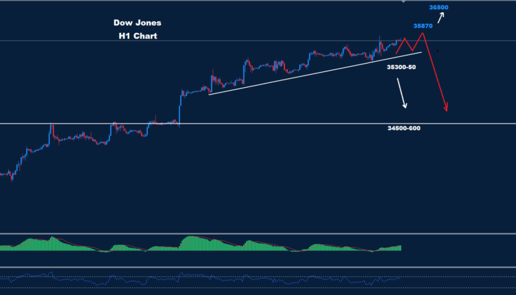 قد يبدأ السوق تحت 35300 في وضعية الهبوط التصحيحي باتجاه 50-34900 و 600-34500.