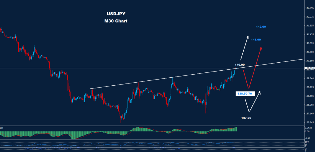 تمكن الدولار الأميركي مقابل الين الياباني من بلوغ الهدف الأول اليوم حول 139.70 كما أشرنا من قبل.