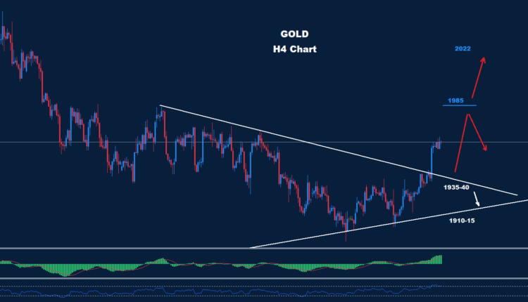 تمكن الذهب من اختراق المقاومة 40-1935 أمس حيث تمكن من التقدم نحو الهدف الأول 1960 ولا يزال أمامه مجال للهدف الثاني 1985.